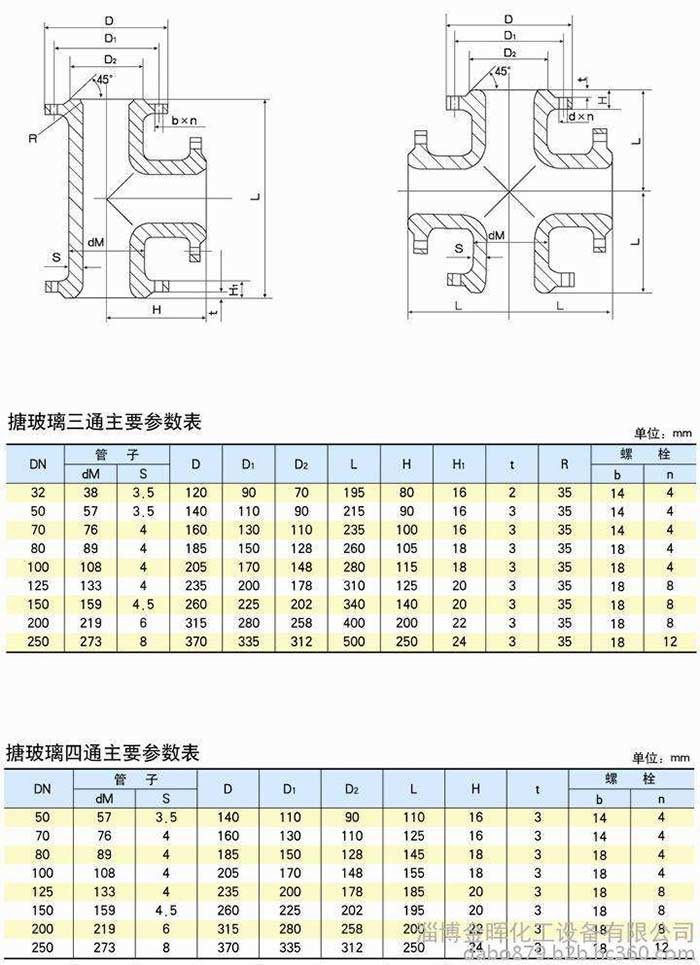 搪玻璃四通參數表